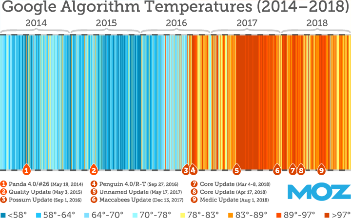 MOZ Algorithm Change History: Think of this as a weather report for Google’s algorithm. It highlights major updates, so you can cross-check these with dips in your Google Analytics traffic to detect penalties.
