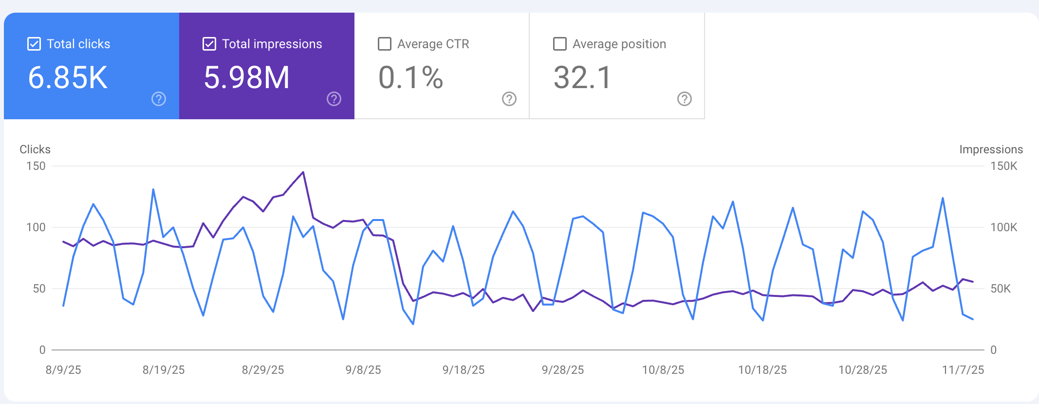 Use the graph in the Performance tab to track clicks and impressions over time, giving you a clear picture of user interaction with your site via search.