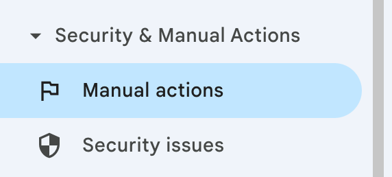 Go to the Security & Manual Actions tab to check for manual penalties. These may include: