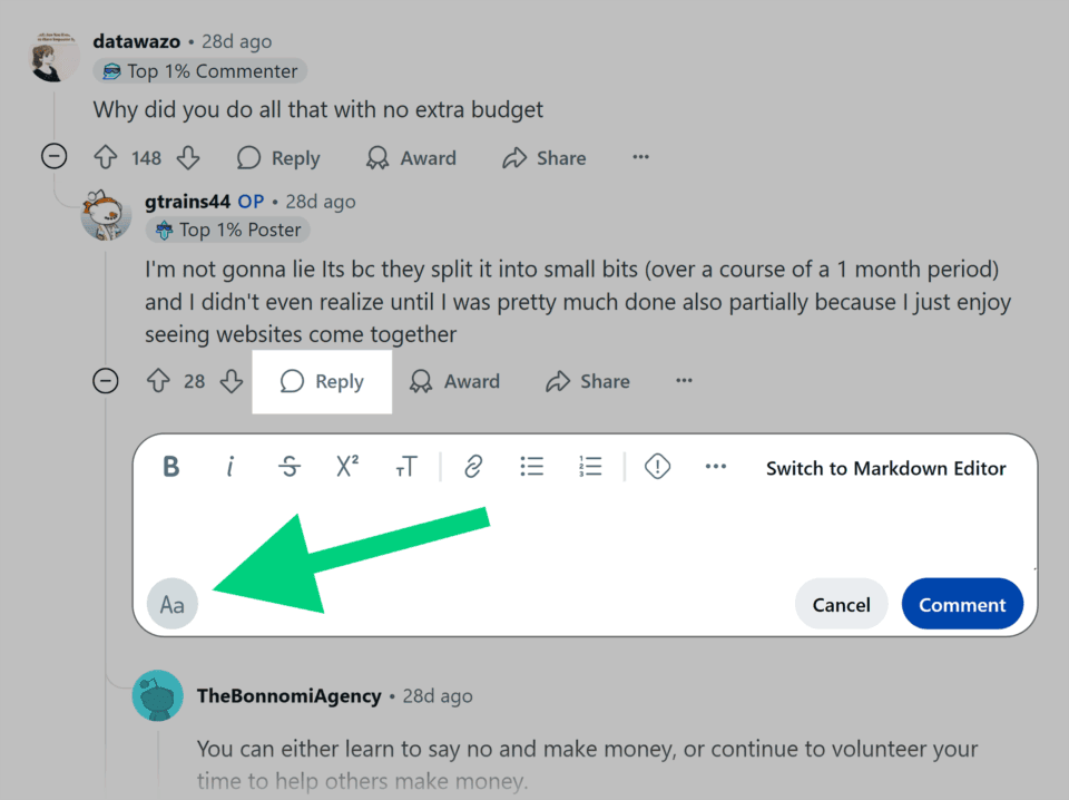 Important: Don’t force it. If your comment works just as well without the brand mention, cut it. If not, Redditors might call that self-serving. No bueno for your karma.