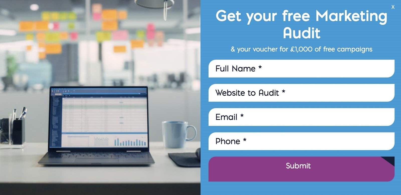 For instance, Iconic Digital provides a free website audit and voucher in return for an email address and phone number.