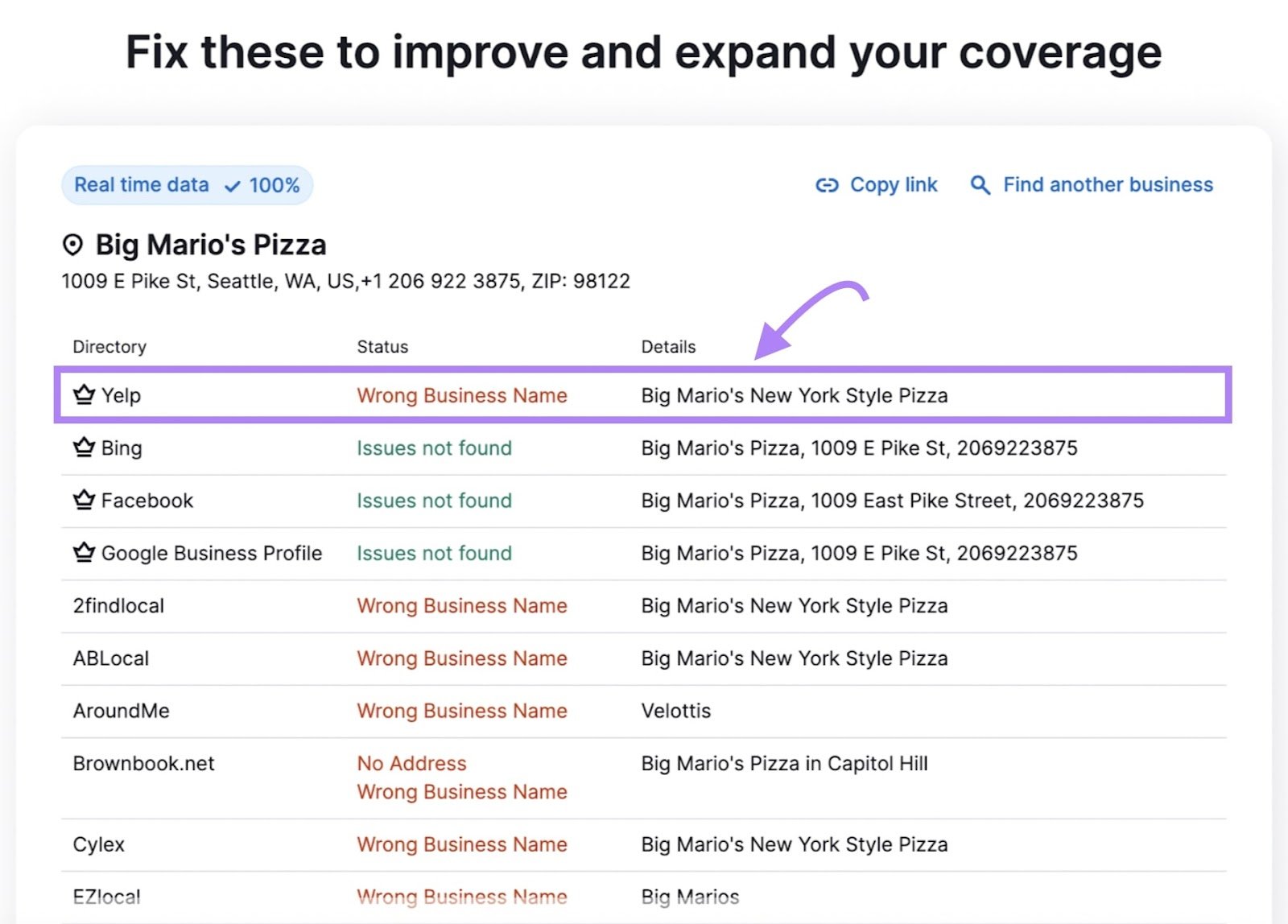 You can easily monitor your listings using Listing Management. Simply enter your business name, website, or phone number into the tool. Once you locate your business, click on it for more details.