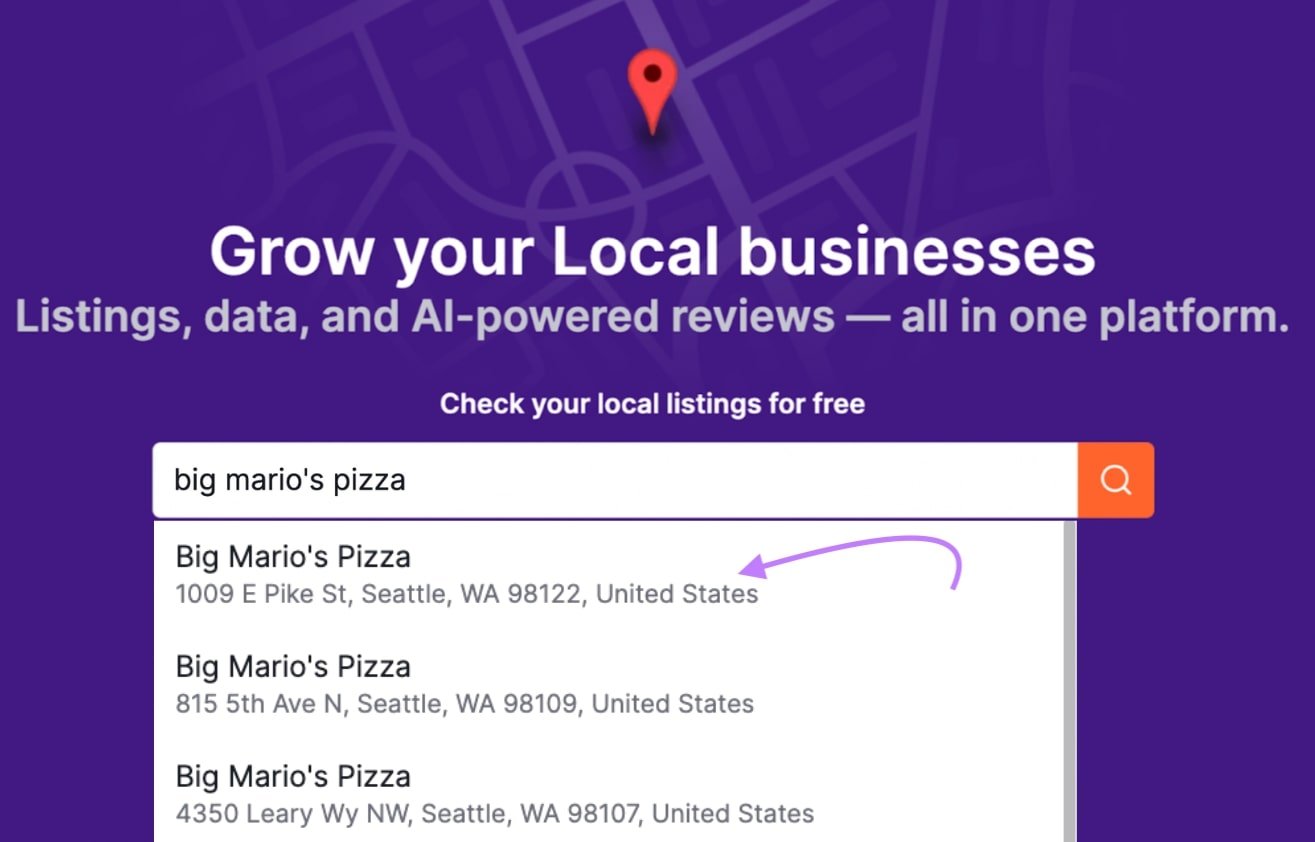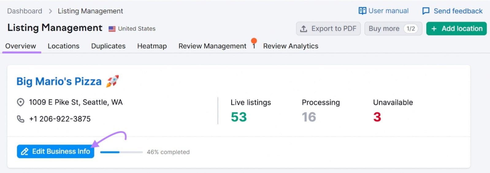 You’ll then have access to the Listing Management dashboard. (If you don’t yet have a subscription to Semrush Local, you’ll be prompted to sign up before proceeding).