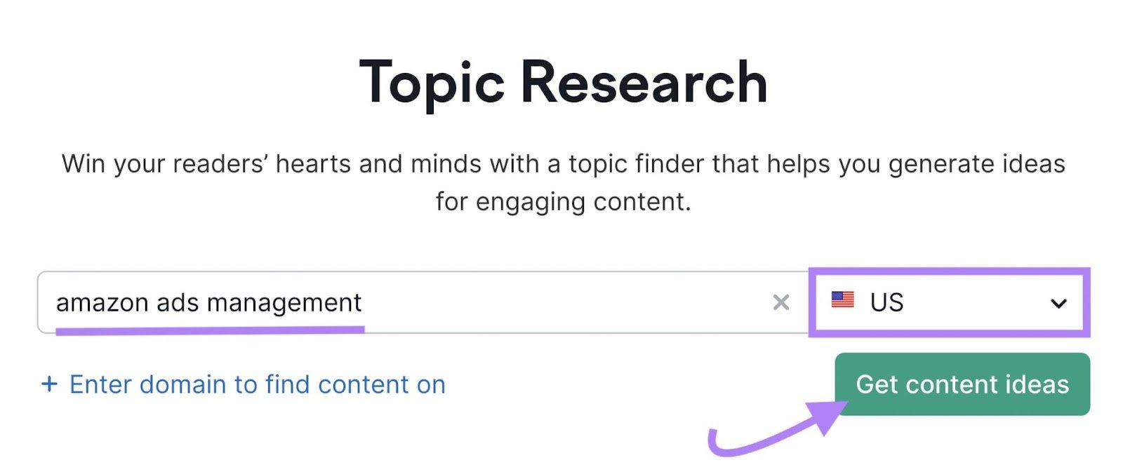 For content inspiration, consider using Semrush’s Topic Research tool.