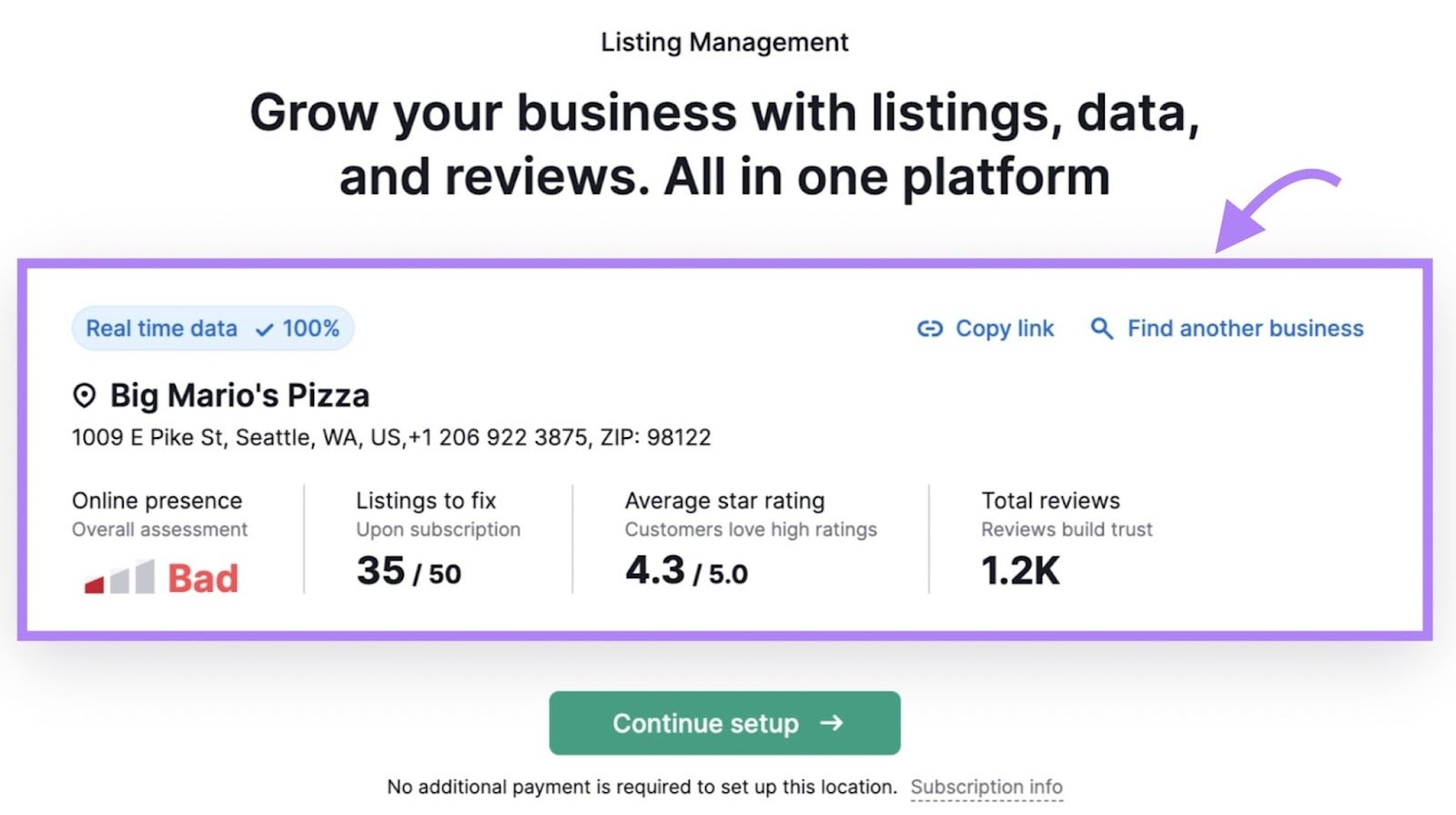 To make edits to your listings directly from your dashboard, scroll to “Let your local visibility soar.” Then, click “Continue setup.”