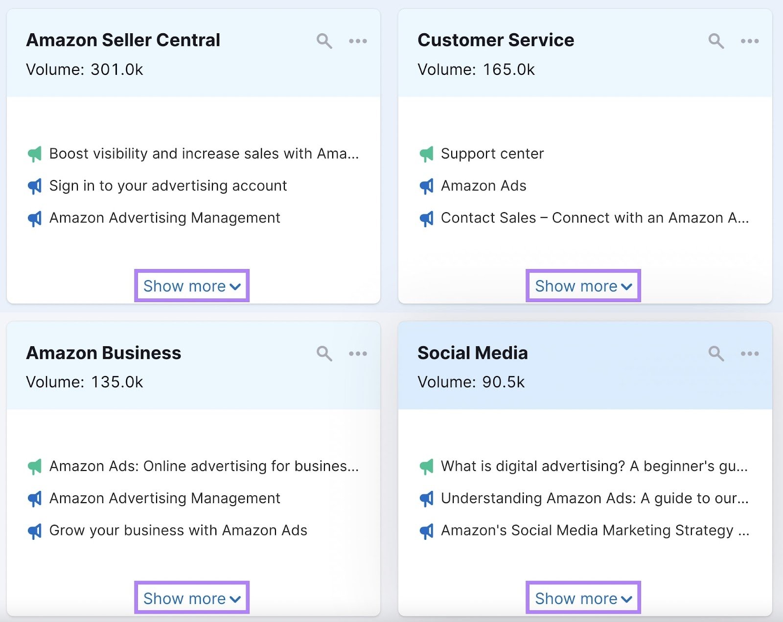 You’ll see a list of subtopics related to your seed topic. Like this: